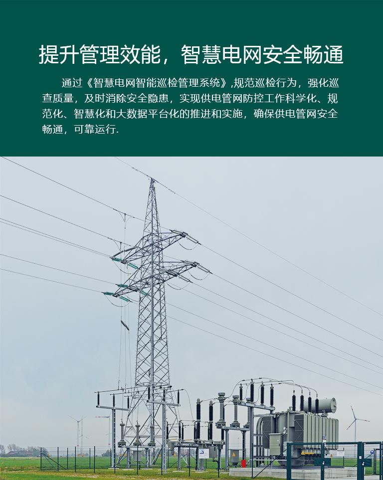 通过《智慧电网GPS巡检管理系统》,规范巡回检查行为,强化巡查质量,实现供电管网防控工作科学化、规范化、智慧化和大数据平台化的推进和实施,确保供电官网安全畅通。