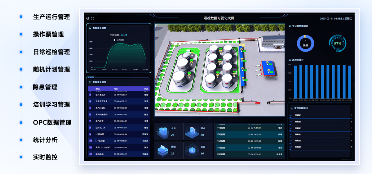 • 巡检管理软件通过 OPC 实时调取,避免重复采集,减少数据延迟导致的误判,提升巡检准确性与效率。