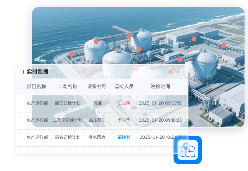 2021年国家管网大连LNG,采用金万码定制的巡检管理系统,全面保障安全生产稳定运行。