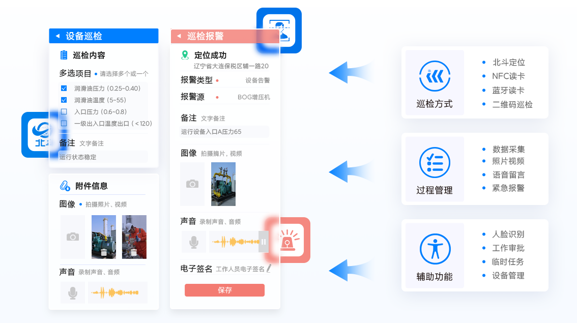 • 详细记录了巡检内容、语音、现场照片、现场视频。